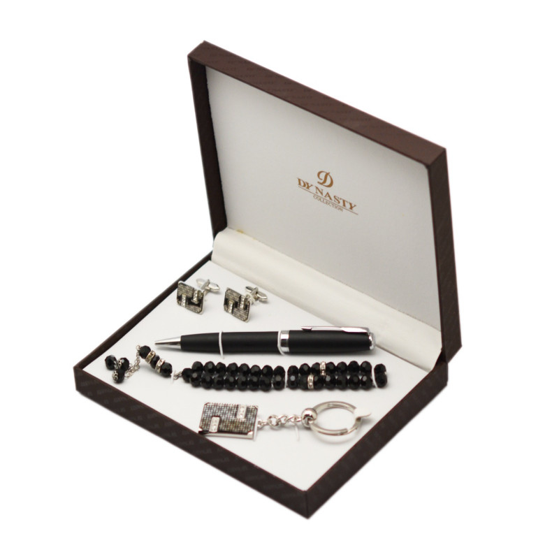 اكتشف الفخامة العملية مع طقم سبحه وقلم داينستي، هدية متكاملة تجمع بين الأناقة والعملية في كل قطعة. يضم الطقم سبحة كريستال سوداء براقة، قلم أنيق، كبك متناسق، وميدالية مفاتيح راقية، ليمنحك لمسة من الرقي في مناسباتك اليومية والخاصة